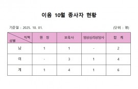 2025년 10월 이음 직원현황(2025.10.01. 기준)